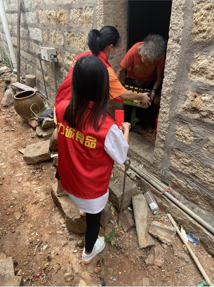 爱心志愿者们带着满满的爱心物资,相继慰问了大山后村的拾荒老人及泉州红梅社区残疾人沈老伯。与此同时,力诚公司携手真情在线公益机构捐赠出力诚鳕鱼肠、小肉枣等明星产品作为下一期敬老活动的物资。
